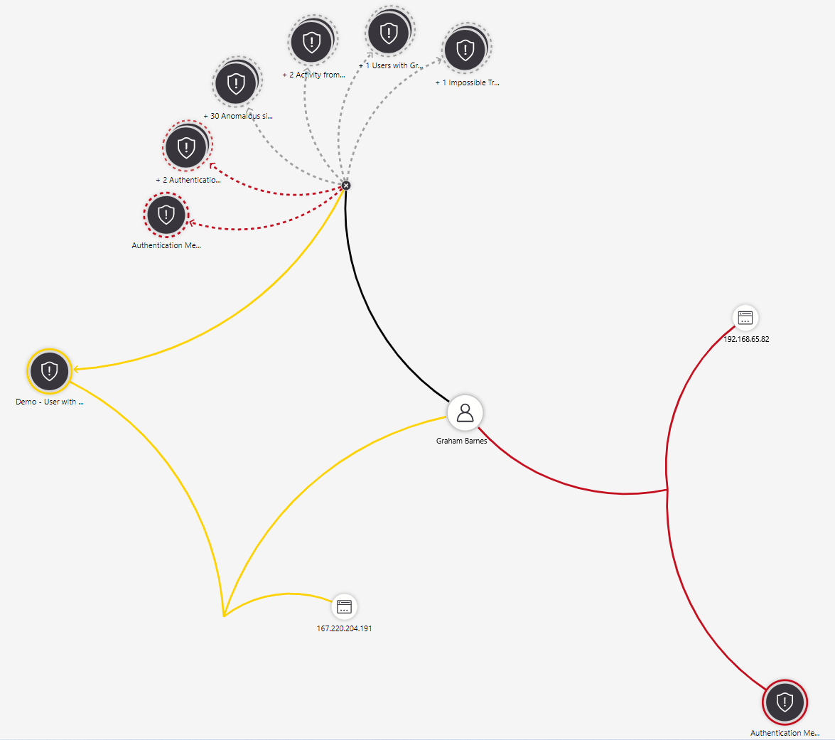 The related alerts will appear connected to the entity by dotted lines.