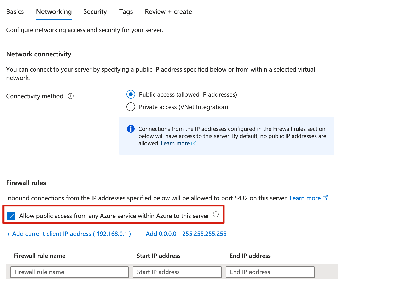 Use the following steps to create an Azure Database for PostgreSQL server: