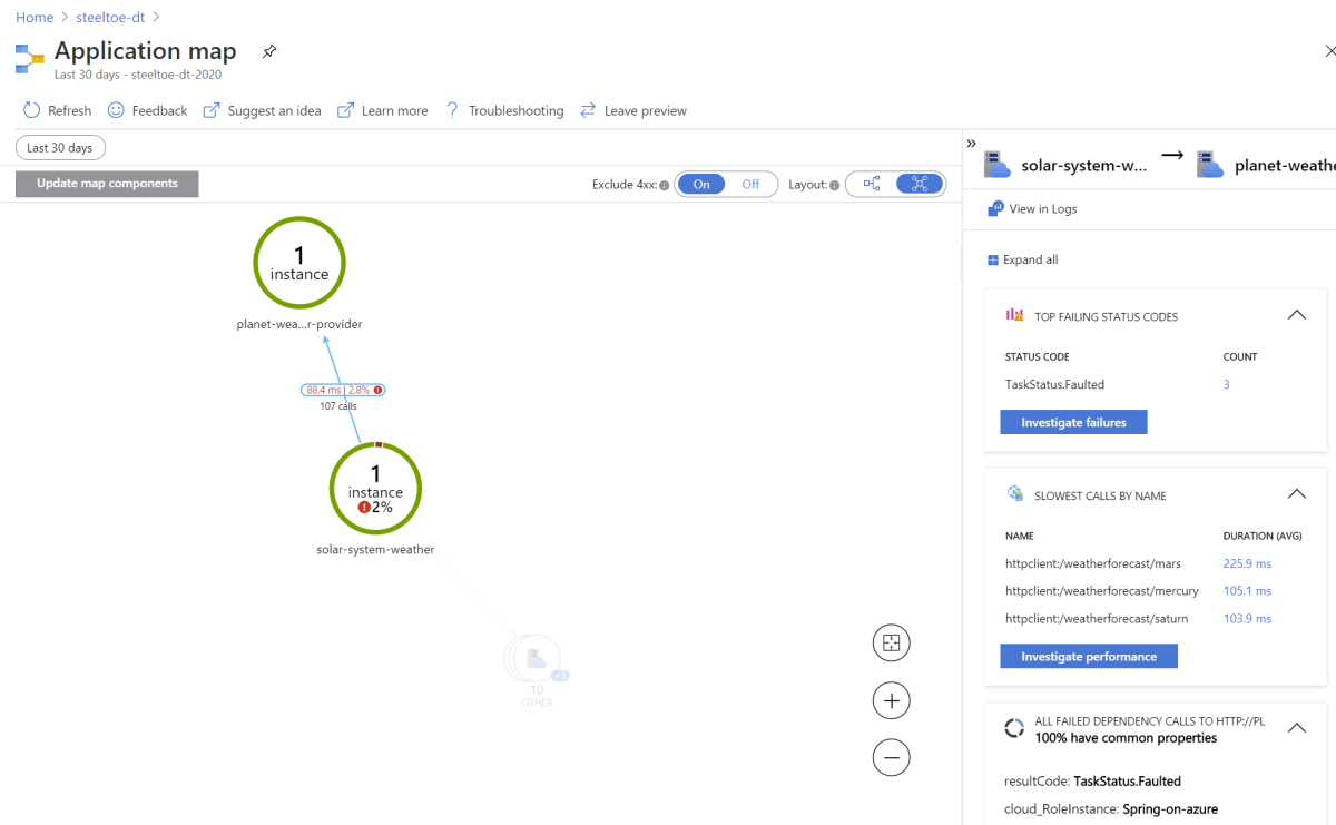 1. In the Azure portal, go to the service | Overview page and select Distributed tracing in the Monitoring section. Then select the View application map tab on the right.
