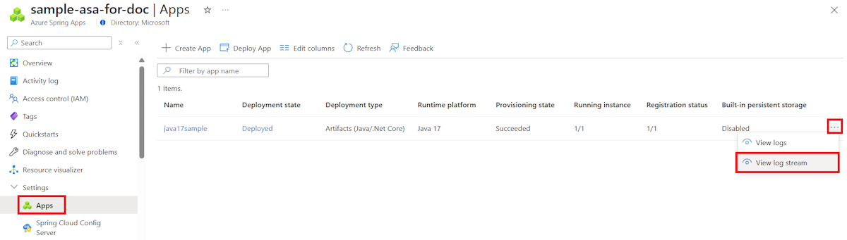 1. Go to the Overview page for your Azure Spring Apps service instance and then select Apps in the navigation pane.