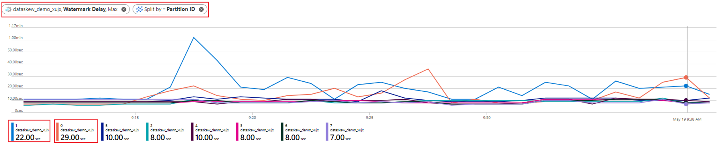 1. Split the Watermark Delay metric by Partition ID. For example: