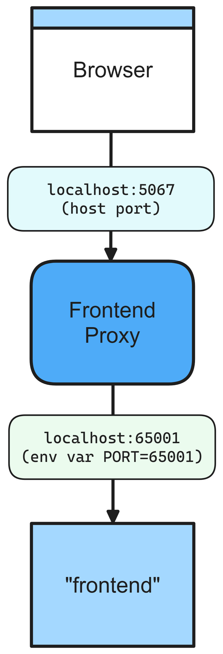 - The frontend proxy sitting between the web browser and the frontend service, listening on port 5067.