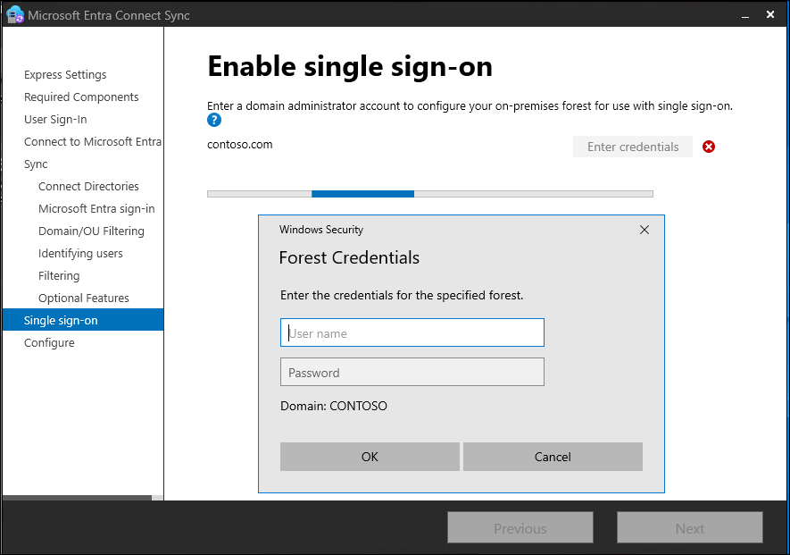 Microsoft Entra Connect tries to verify the domain during the configuration stage. If you don't add the necessary Domain Name System (DNS) records, the configuration can't be completed.