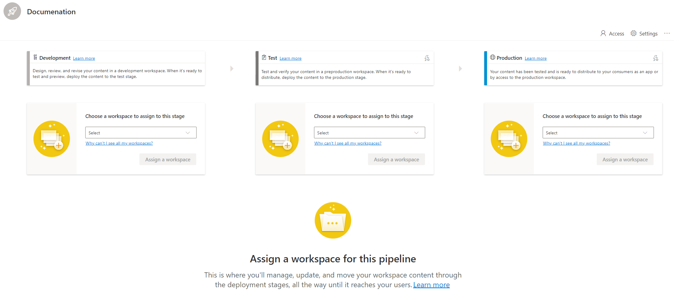 For more information about assigning workspaces and the implications regarding capacities and permissions, see The deployment pipelines process.
