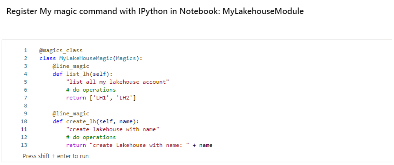 Fabric notebooks provide code snippets that help you easily write commonly used code patterns, like: