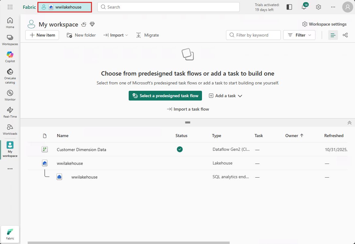 - Before you create a lakehouse, you must create a Fabric workspace.