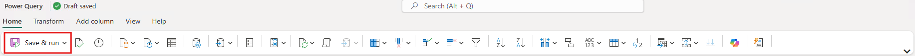 From the dataflow canvas, you can easily transform the data based on your business requirements. For simplicity, we aren't making any changes in this tutorial. To proceed, select Save and Run in the tool bar.