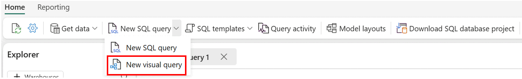 In the ribbon, create a new query using the New visual query button, as shown in the following image.