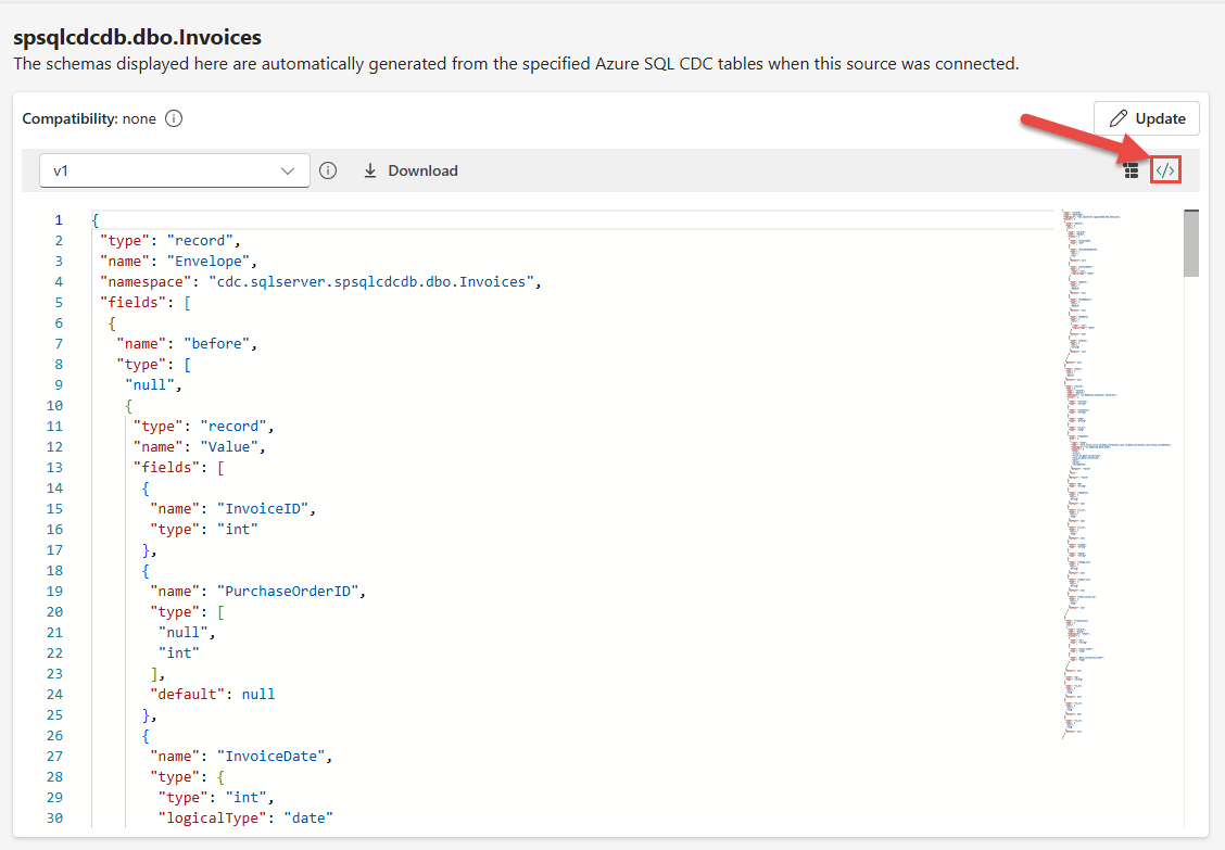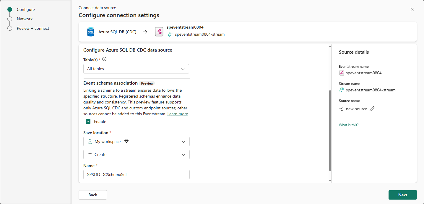 2. Select the schema set that the Azure SQL Database (CDC) connector created.