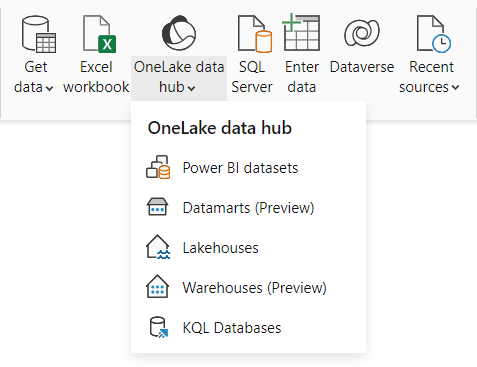 A list of KQL Databases that you have access to appears in the OneLake data hub window.