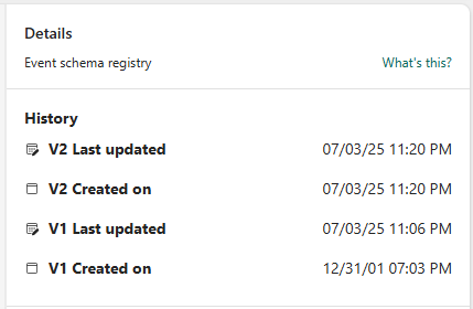 You can see the history of creation and update of the schema in the History section of Details pane to the right.