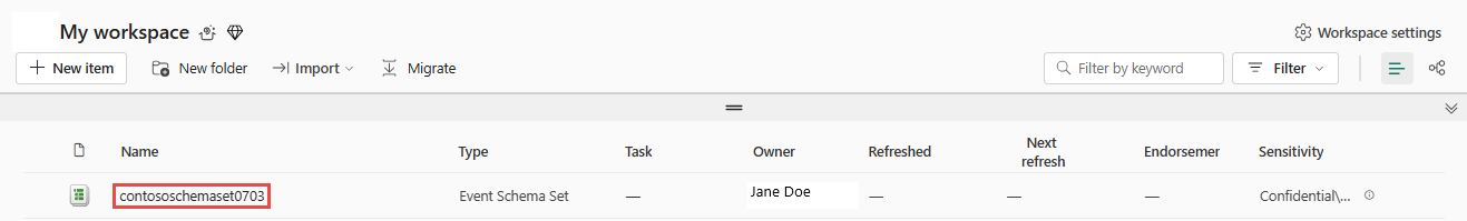 If you aren't on the schema set page already, navigate to the Fabric workspace, and select the event schema set.