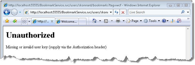 One of the more tedious aspects of implementing RESTful services is dealing directly with some of the HTTP protocol details, like returning the appropriate HTTP status codes and descriptions, especially within the context of a WCF service operation. The following code illustrates how to check for unauthorized users and it returns a 401 “Unauthorized” response when necessary: