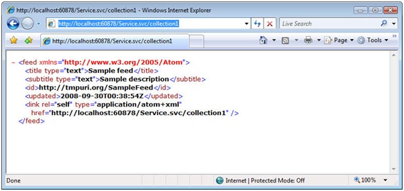 It’s important to note that the help page is returned as an Atom feed. Most Web browsers provide built-in feed rendering to facilitate human viewing, which is what Internet Explorer is doing in Figure . However, since it’s a feed, consumers can also programmatically consume the description if desired. If you were to turn off the “feed reading view” in the Internet Explorer options, you’d actually see the feed XML rendered instead – you can also inspect the feed XML by viewing the source of the page.