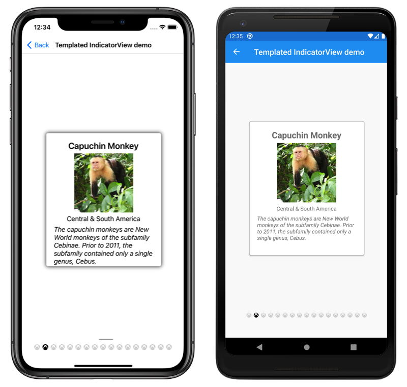 The IndicatorView is a control that displays indicators that represent the number of items, and current position, in a CarouselView: