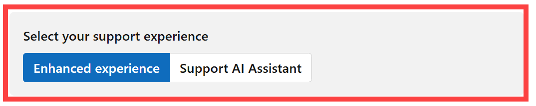This leads you to the new Support AI Assistant support request process. The following section provides instructions for you to follow when you arrive there.
