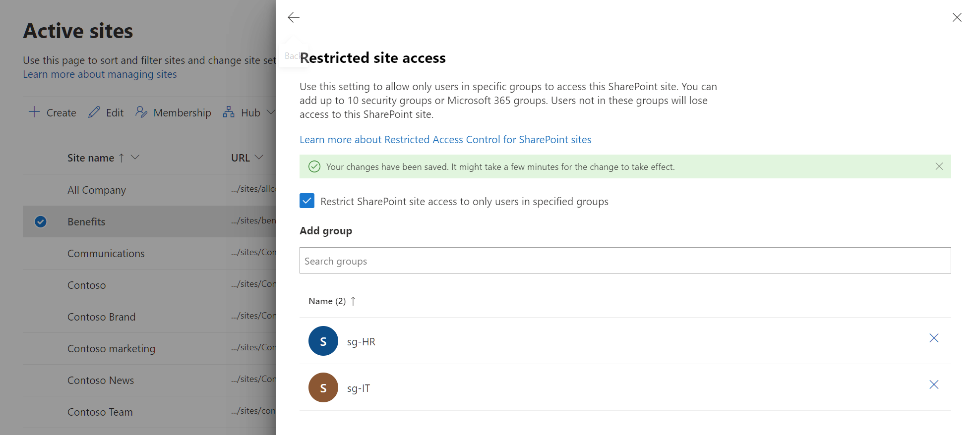 Restrict access to all SharePoint sites using Microsoft 365 group or Microsoft Entra security groups