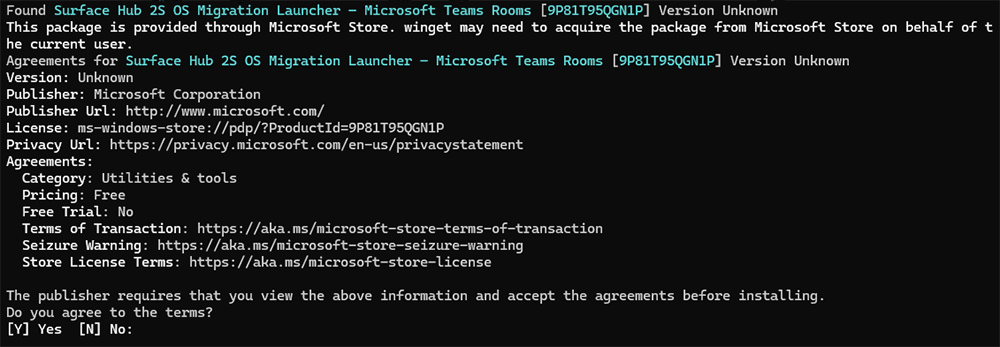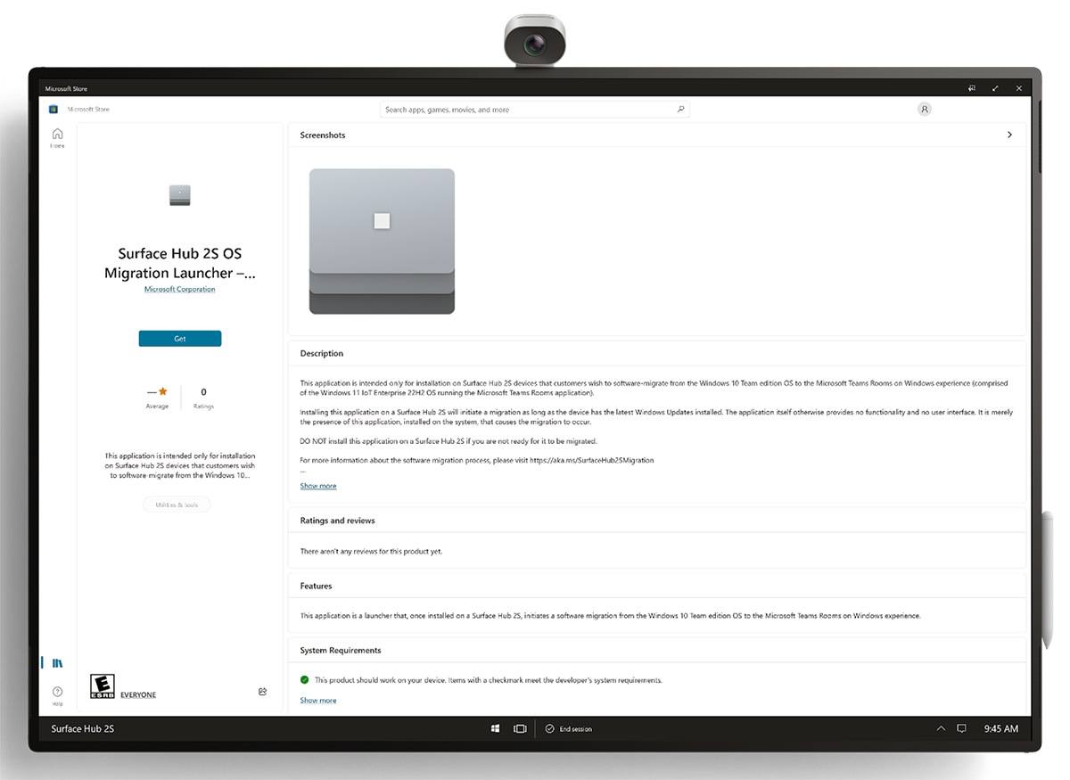 Search for Surface Hub 2S OS Migration Launcher – Microsoft Teams Rooms and select Get.