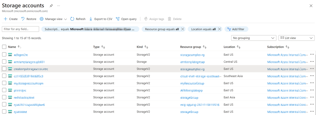 Navigate to the list of your storage account in the Azure portal.