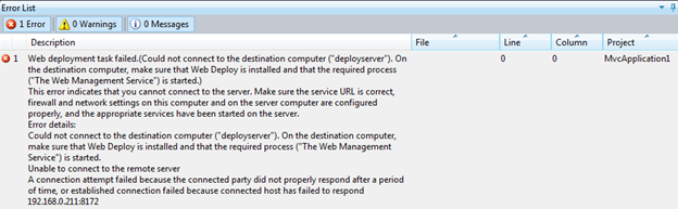 Web deployment task failed.(Could not connect to the destination computer ("deployserver").