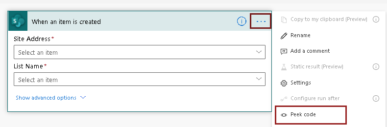 If the field is empty, there are no other customizations. The title of the card (in this case, When an item is created or modified) indicates when the trigger fires.