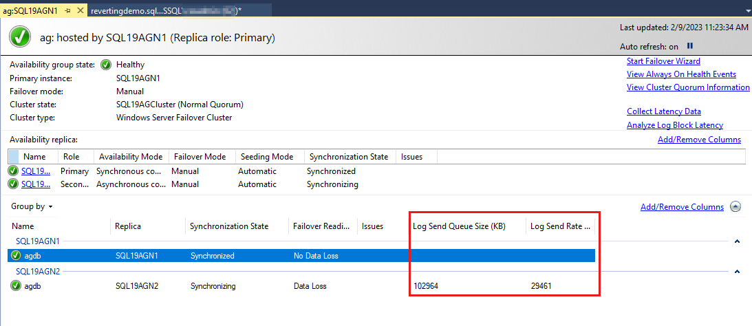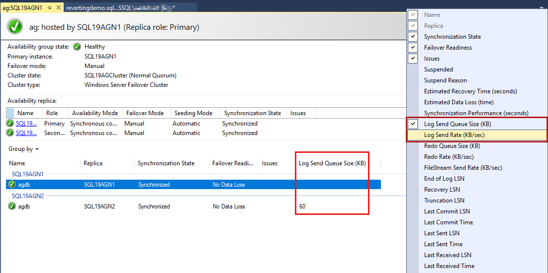 The log send queue is specific to each secondary replica database. Therefore, to review the log send queue of an availability group database, follow these steps: