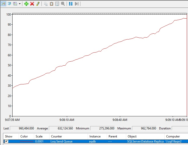 During healthy AlwaysOn performance, monitor the log send rate and mirrored transactions/sec values for your busy availability group databases. What do they look like during typically busy business hours? What do they look like during periods of maintenance, when large transactions drive higher transaction throughput on the system? You can compare these values when you observe log send queue growth to help determine what has changed. The workload might be greater than usual. If the log send rate is less than usual, further investigation might be required to determine why.