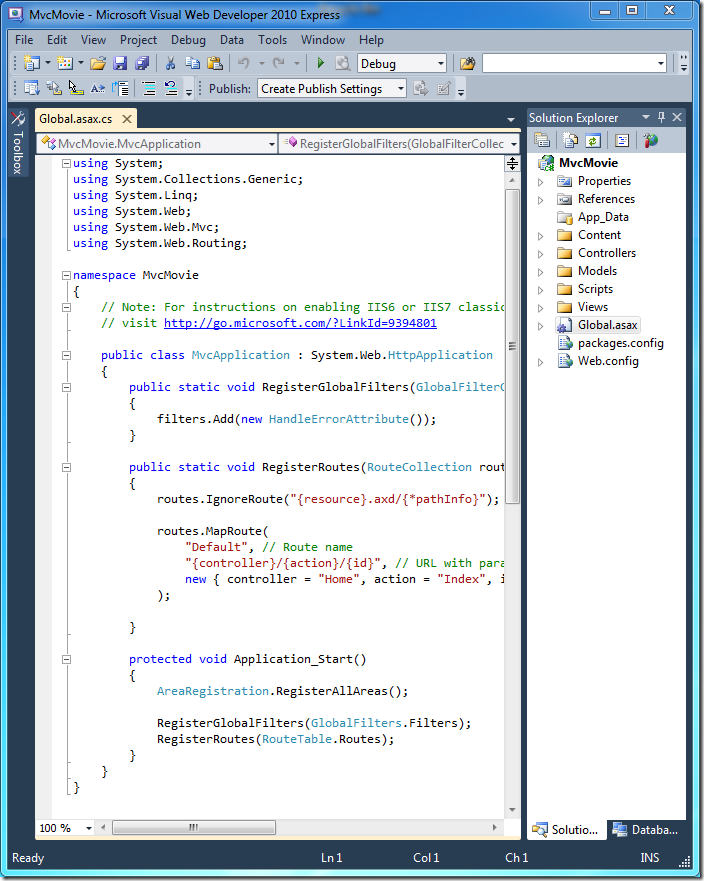 Abra el archivo Global.asax que se encuentra en la raíz del proyecto MvcMovies: