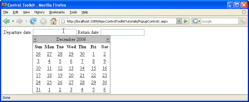 Departure date: <asp:TextBox ID="tbDeparture" runat="server" />