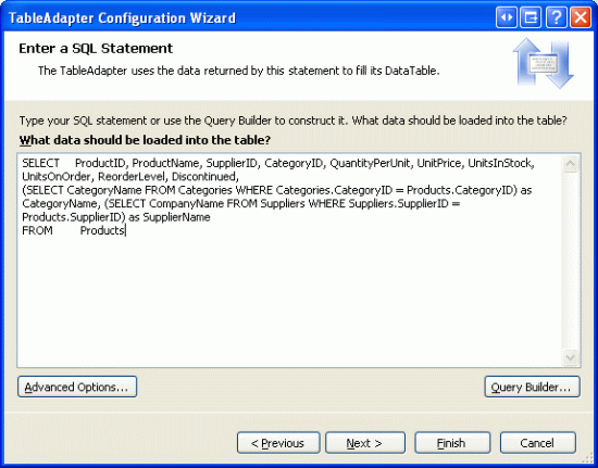 Figura 5: Usar la misma consulta SQL de Products TableAdapter en la DAL original (haga clic para ver la imagen de tamaño completo)