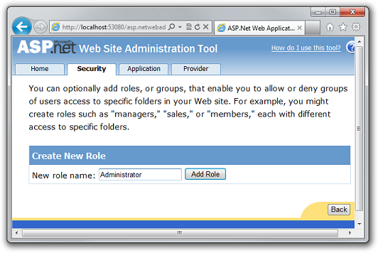 Haga clic en Crear o administrar roles y agregue un rol de Administrador.