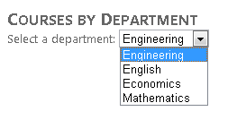 Screenshot of the Internet Explorer browser window, which shows the Courses by Department view with a dropdown menu for departments.