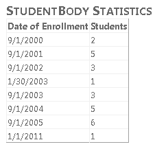 EntityTypeFilter="Student"al controlStudentsEntityDataSource. El marcado será ahora similar al ejemplo siguiente:<asp:EntityDataSource ID="StudentsEntityDataSource" runat="server" ContextTypeName="ContosoUniversity.DAL.SchoolEntities" EnableFlattening="False" EntitySetName="People" EntityTypeFilter="Student" EnableInsert="True" </asp:EntityDataSource>En About.aspx, agregue