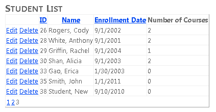 Ejecute la página Students.aspx y el nuevo alumno aparezca en la lista.