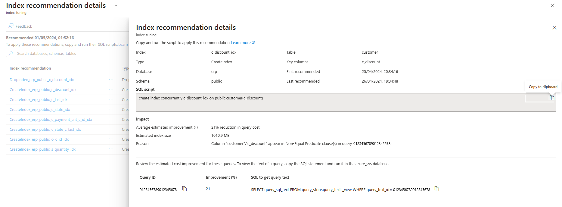 "id": "/subscriptions/<subscription_id>/resourceGroups/<resource_group>/providers/Microsoft.DBforPostgreSQL/flexibleServers/<server>/tuningOptions/index/recommendations/<recommendation_id>",