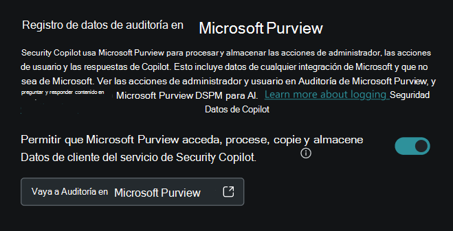 - Compruebe que ha optado por permitir el acceso de Microsoft Purview dentro de Security Copilot. Para obtener más información, consulte Habilitación de la funcionalidad de registro de auditoría.