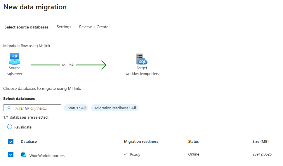 Una vez que haya preparado el entorno para la migración de vínculos de Instancia administrada, puede migrar las bases de datos de SQL Server a Azure SQL Managed Instance.