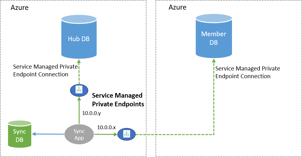 O novo recurso de link privado permite que você escolha um ponto de extremidade privado gerenciado pelo serviço para estabelecer uma conexão segura entre o serviço de sincronização e seus bancos de dados de membro ou hub durante o processo de sincronização de dados. Um ponto de extremidade privado gerenciado por serviço é um endereço IP privado em uma rede virtual e uma sub-rede específica. No Data Sync, o endpoint privado gerenciado pelo serviço é criado pela Microsoft e é usado exclusivamente pelo serviço para uma determinada operação de sincronização.