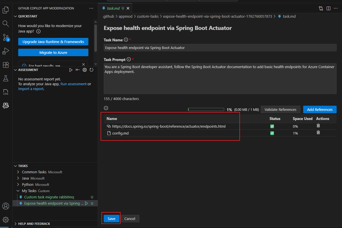 task.mdarquivo seguindo as etapas predefinidas na extensão de modernização do aplicativo GitHub Copilot.No arquivo aberto