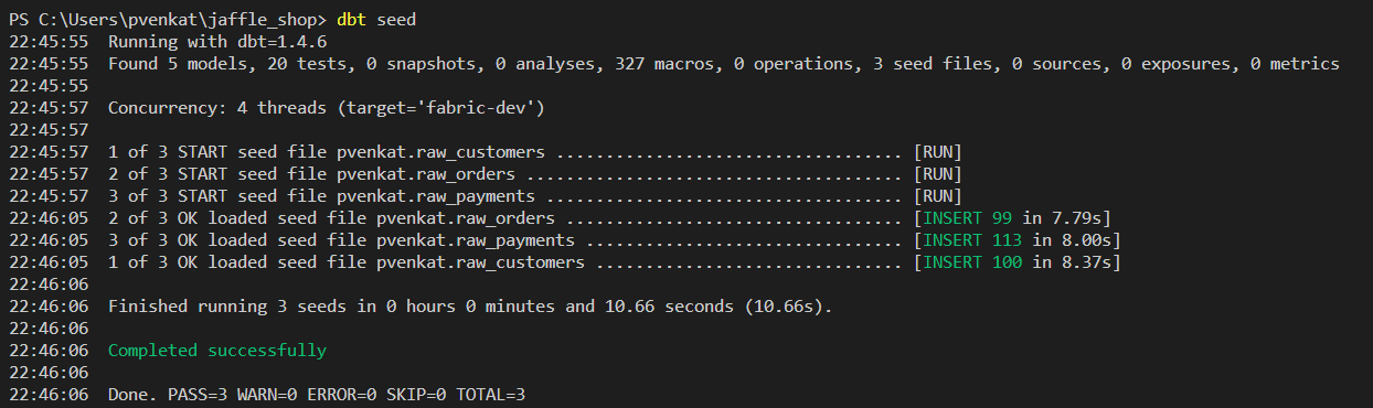 jaffle_shopdbt.Agora é hora de testar se o adaptador está funcionando ou não. Primeiro, execute