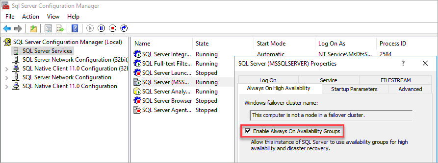 Depois de habilitar os Grupos de Disponibilidade, reinicie o SQL Server.