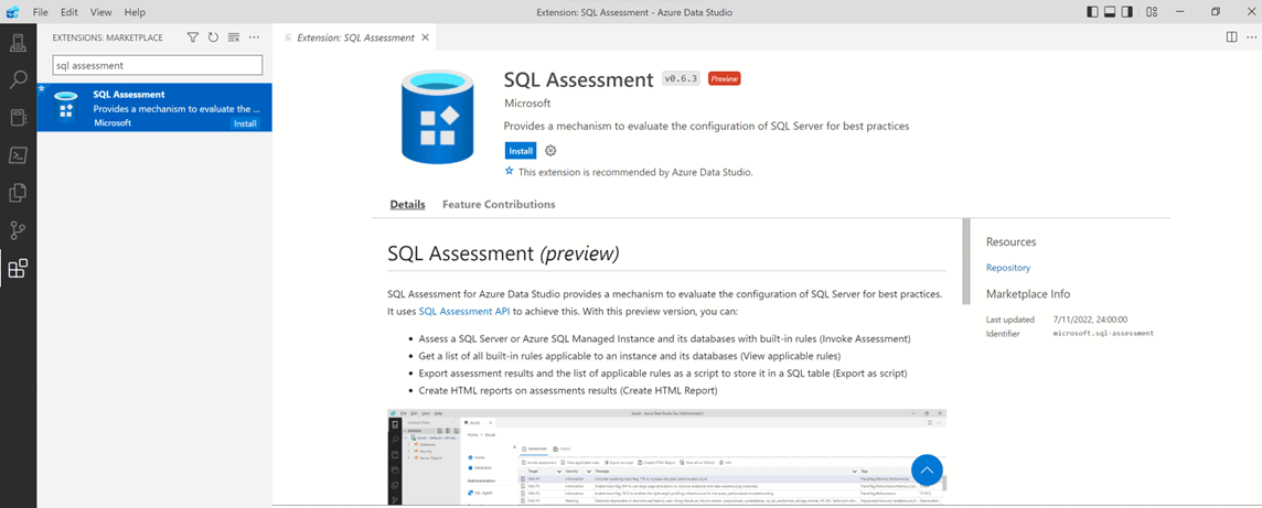 A extensão de Avaliação do SQL para o Azure Data Studio (versão prévia) fornece um mecanismo para avaliar a configuração do SQL Server para práticas recomendadas.