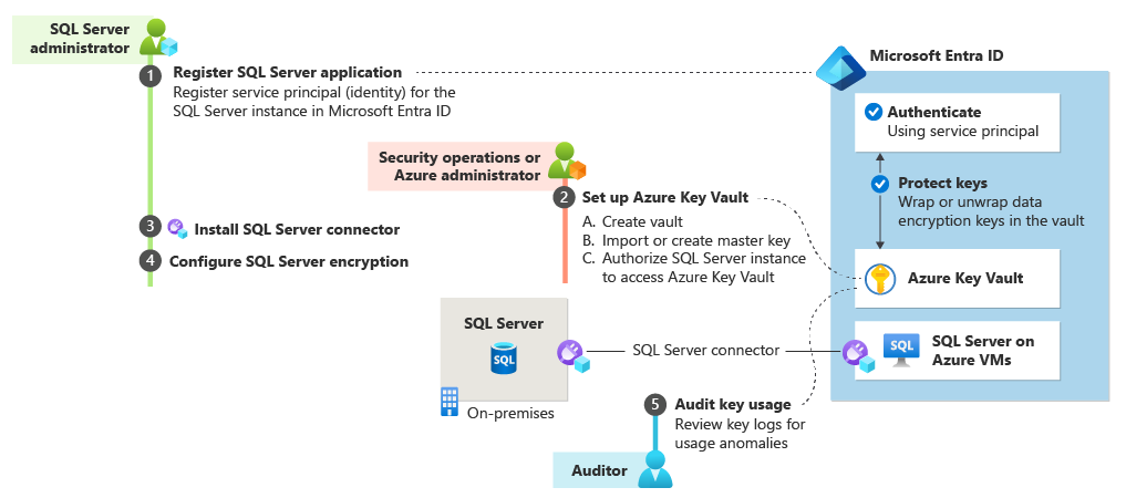 O Conector do SQL Server para Azure Key Vault permite que a criptografia do SQL Server use o serviço do Azure Key Vault como um provedor EKM (Gerenciamento extensível de chaves) para proteger as chaves de criptografia do SQL Server.