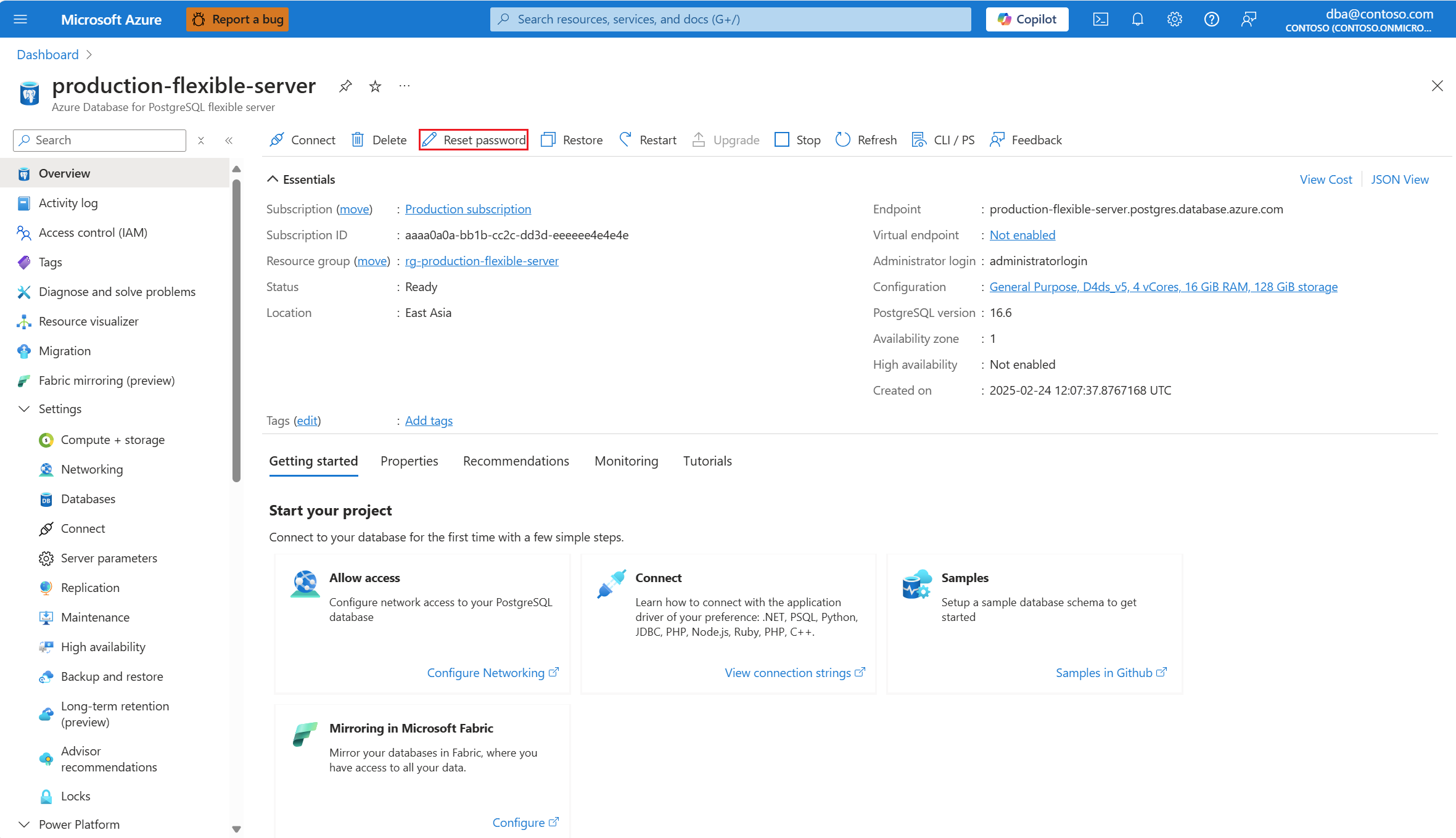 - Uma instância de servidor flexível do Banco de Dados do Azure para PostgreSQL. Para criar o Banco de Dados do Azure para instância de servidor flexível do PostgreSQL, consulte Criar um Banco de Dados do Azure para PostgreSQL.