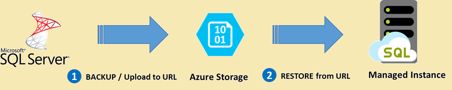RESTORE DATABASE FROM URL, que utiliza backups nativos do SQL Server e requer algum tempo de inatividade
