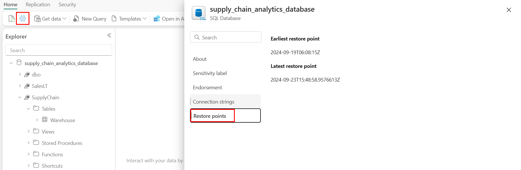 Para obter mais informações sobre backups no banco de dados SQL de malha, consulte Backups automáticos no banco de dados SQL no Microsoft Fabric e Restaurar a partir de um backup no banco de dados SQL no Microsoft Fabric.