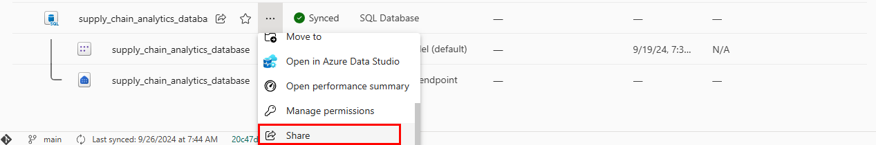 Para obter mais informações sobre compartilhamento, consulte Compartilhar seu banco de dados SQL e gerenciar permissões e Compartilhar itens no Microsoft Fabric.