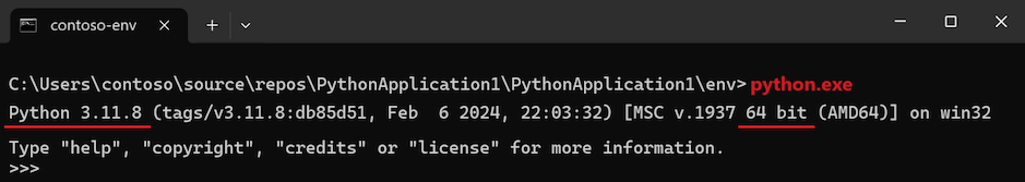 python.exeO processo de execução mostra a sua versão instalada em Python e indica se é de 32 bits ou de 64 bits: